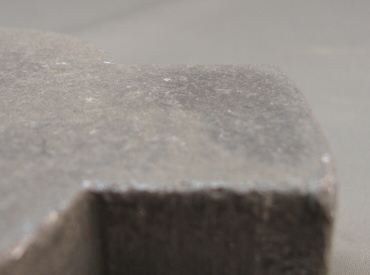When laser cut (or saw cut), steel parts can develop heavy slag on the edges (see picture above). The slag is developed as the metal is melted during the laser cutting action and then re-forms on the edges on the ‘bottom’ of the part. The excess metal can be removed by hand grinding; however, if the parts are small or there are many parts to be cleaned, hand finishing is not efficient.